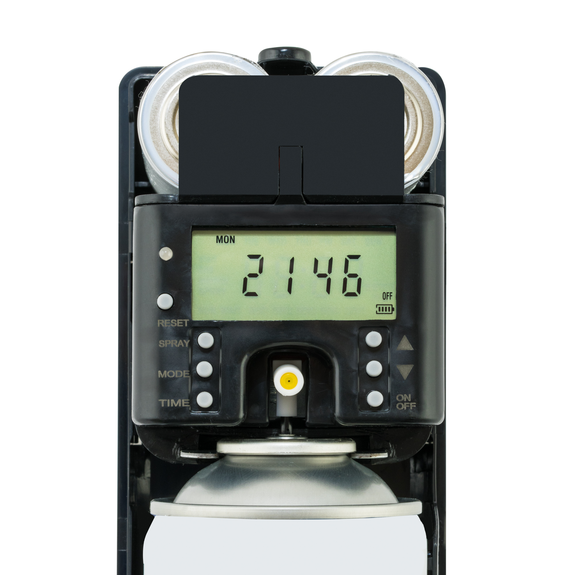 Корпус освежителя закрывается на ключ для предотвращения хищений баллонов с ароматизатором воздуха и/или батареек.