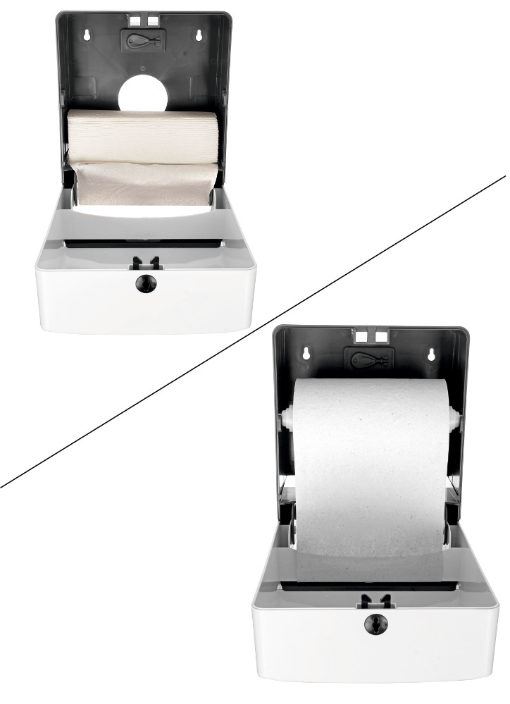 - Подходит как для рулонных бумажных, так и для листовых бумажных полотенец.