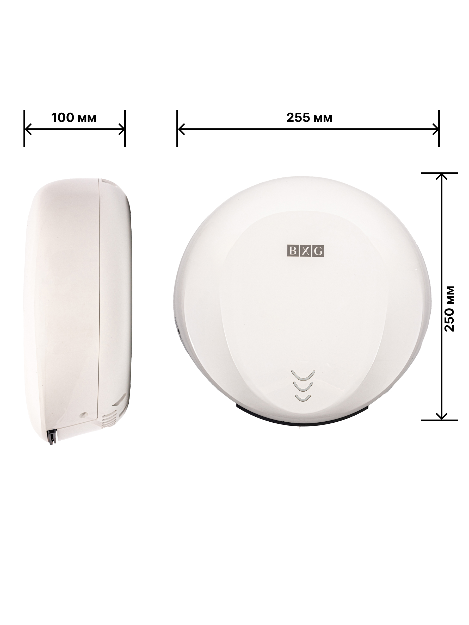 BXG-300 – Высокоскоростная электросушилка сушилка для рук нового поколения с функцией Ультрафиолетового обеззараживания. Сушилка выполнена из высокопрочного пластика ABS в благородном белом цвете с глянцевым покрытием..