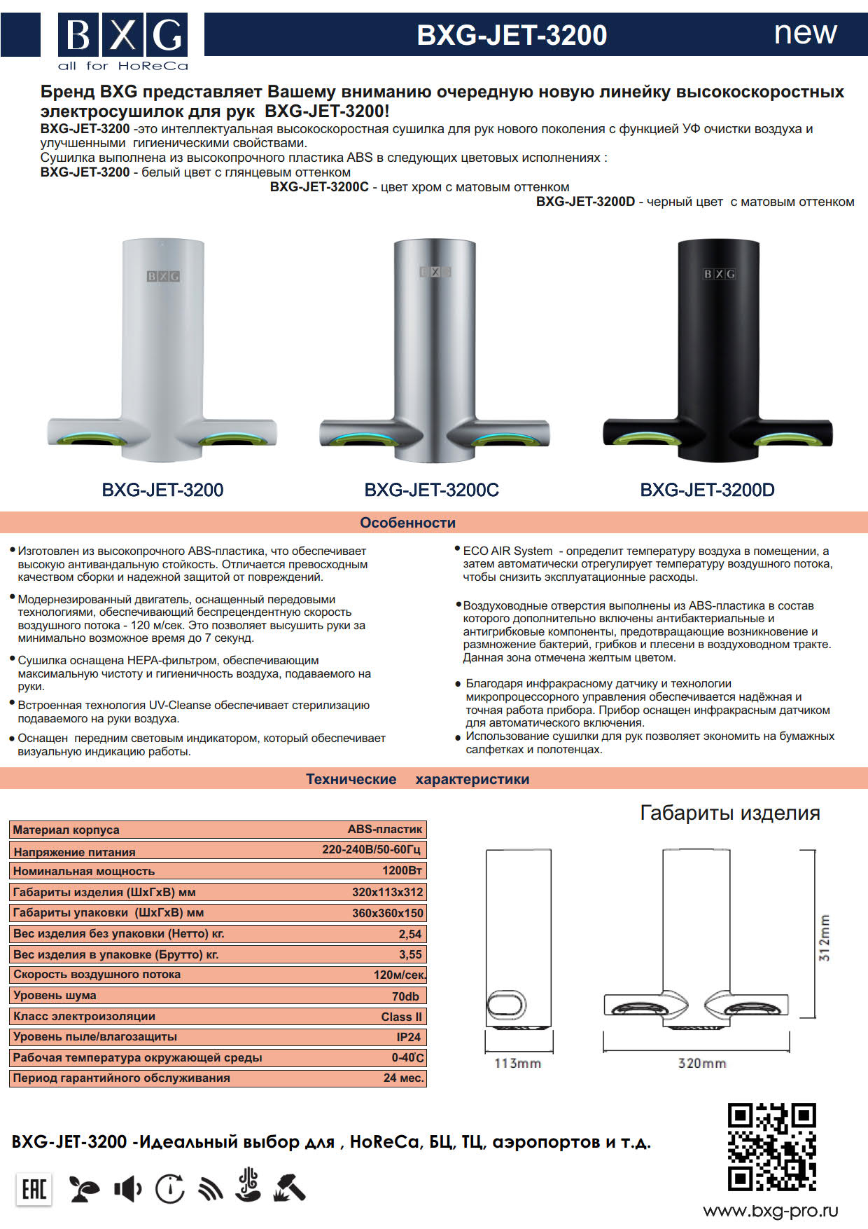 -Бренд BXG представляет Вашему вниманию очередную новую линейку высокоскоростных электросушилок для рук BXG-JET-3200!