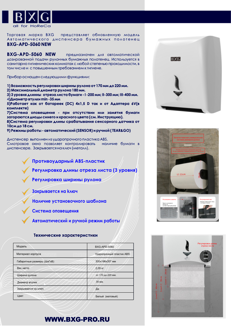 ТМ BXG представляет усовершенствованную обновленную модель  Автоматический диспенсер рулонных бумажных полотенец  BXG-APD-5060 NEW